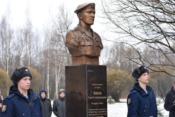 На Аллее Памяти воинов – десантников 6-ой роты 27 февраля 2020 года открыт бюст Сергея Шикова.Сергей Александрович Шиков, наводчик-оператор, разведчик в/ч 32515, родился 29 апреля 1981 года в Великих Луках Псковской области. 24 мая 1999 года был призван на военную службу Великолукским ОГВК Псковской области. 1 марта 2000 года геройски погиб при выполнении специального задания в Аргунском ущелье.