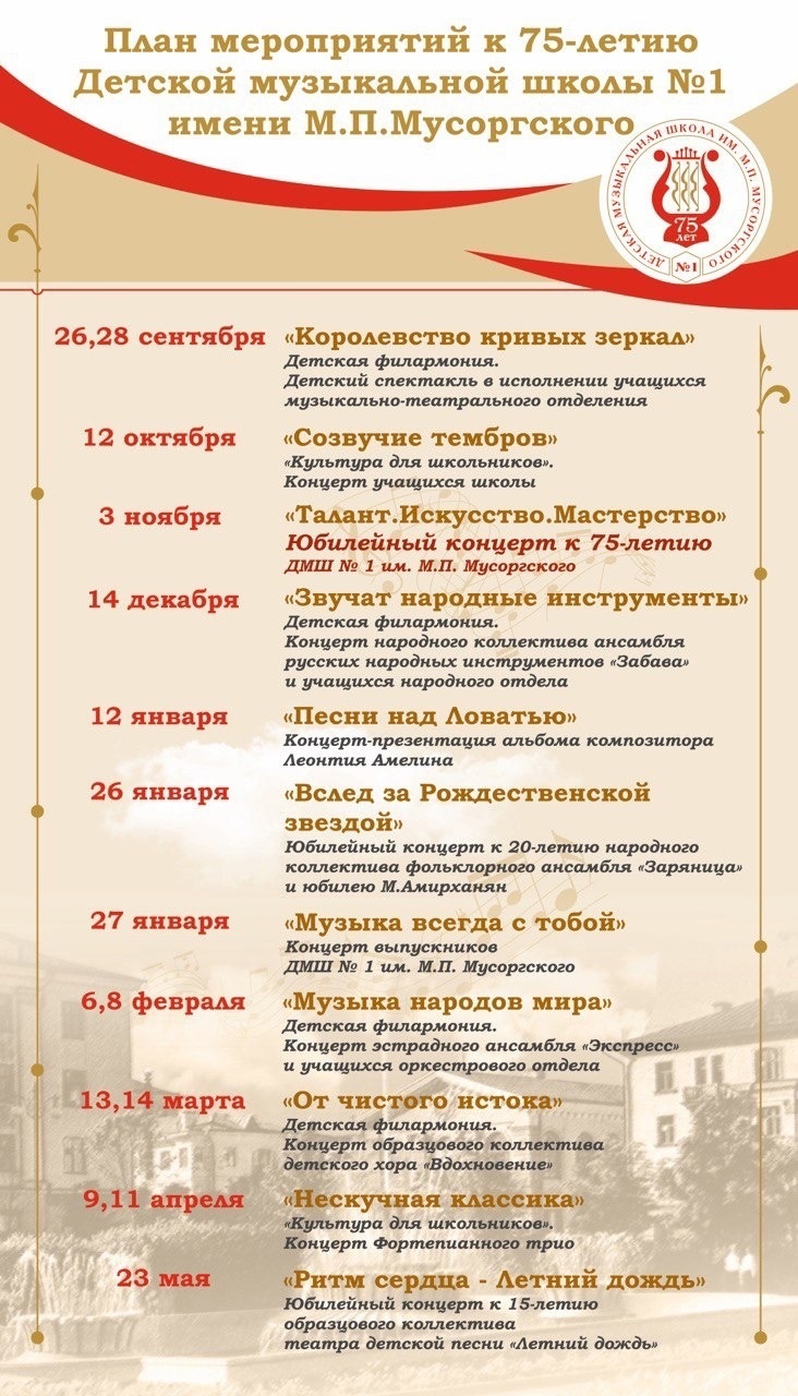 План мероприятий к 75-летию Детской музыкальной школы № 1 им. М.П. Мусоргского