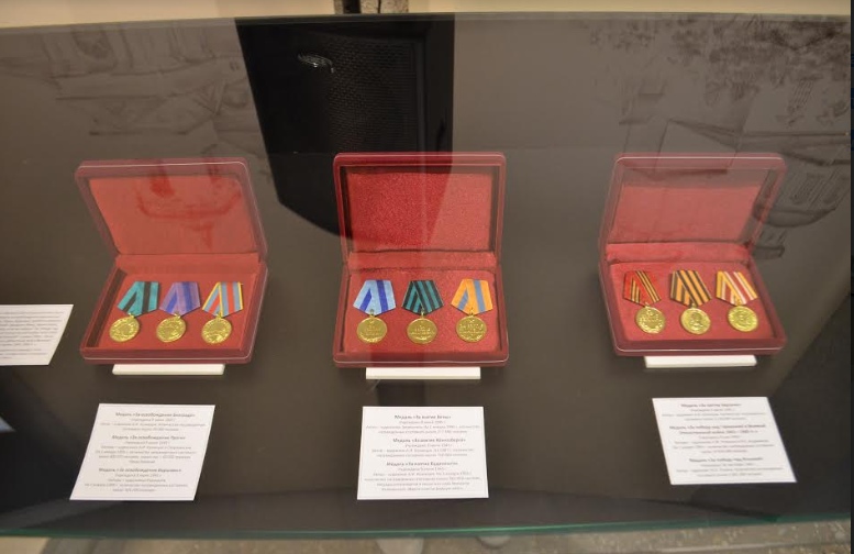 На выставке «За заслуги» представлены медали, учрежденные советским правительством за военные заслуги в годы Великой Отечественной войны . Демонстрируемая коллекция поступила в музей от Администрации Президента Российской Федерации в 2018 году. Медали дополнены миниатюрными копиями советских наград и портретами маршалов СССР, подаренными генералом армии Ю.Н. Якубовым.