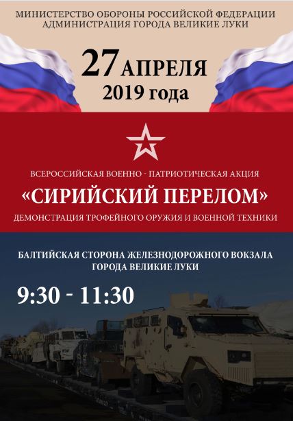 27 апреля с 09.30 до 11.30 состоится демонстрация трофейного оружия и военной техники на железнодорожном вокзале города Великие Луки (Балтийская сторона).