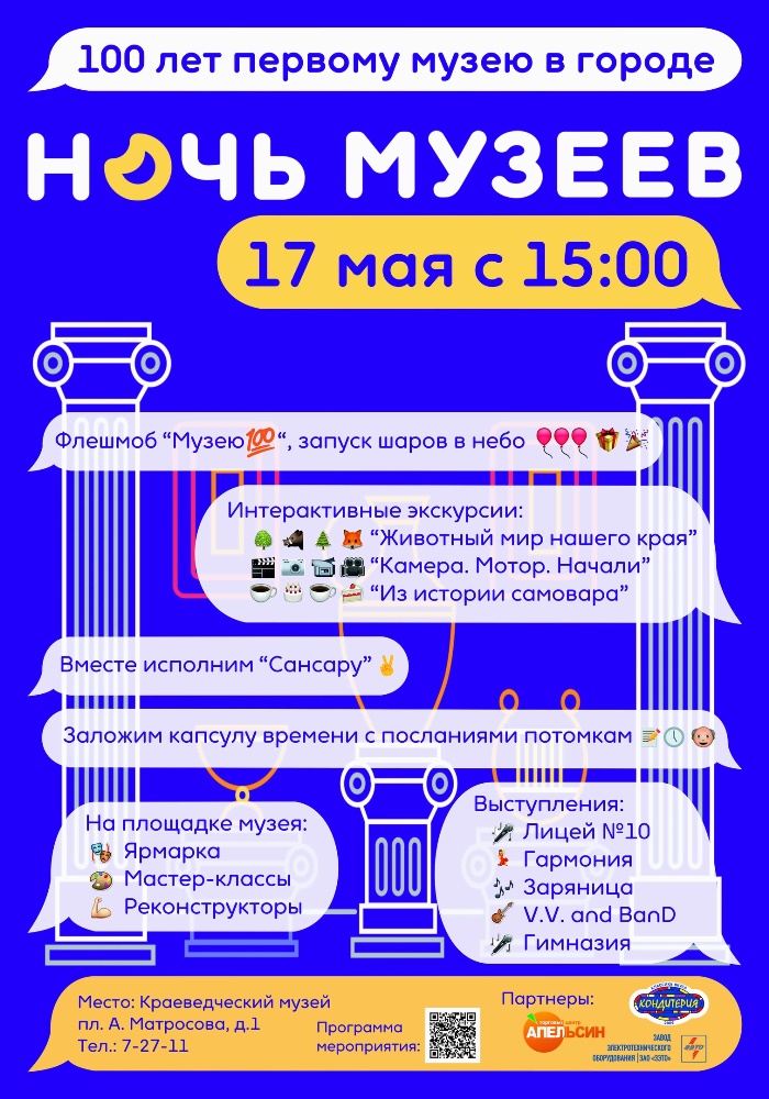 В этом году акция «Ночь музеев», проводимая в нашем городе, будет посвящена 100-летнему юбилею Великолукского Краеведческого музея. Отметим, что всех гостей акции ждет интересная разнообразная программа.