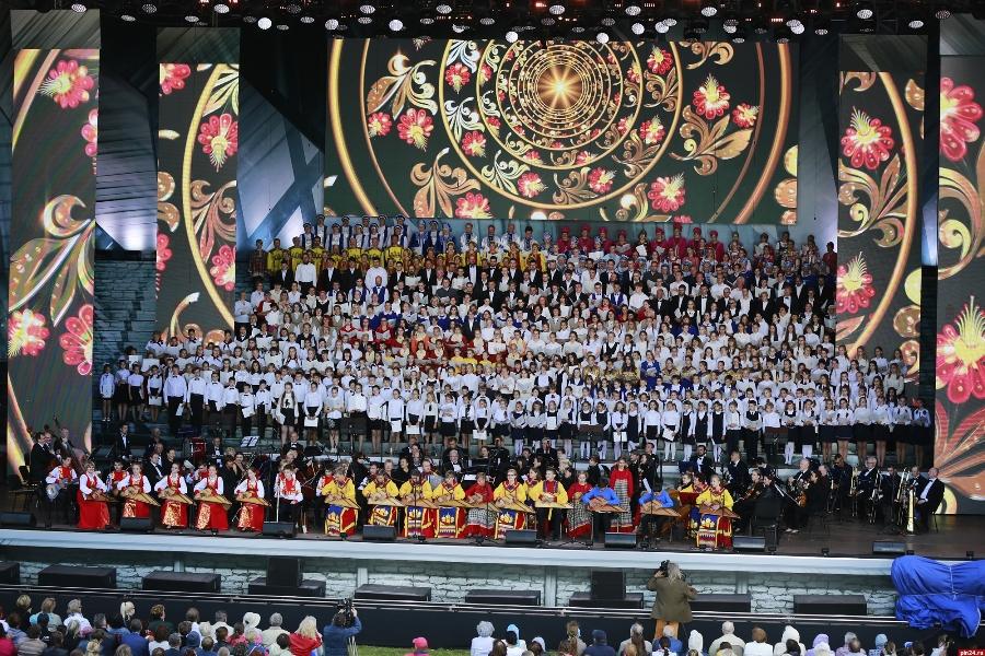Сводный хор Псковской области объединил ведущие хоровые коллективы региона, как народные, так и академические. Лучшие хористы в сопровождении симфонического оркестра Псковской областной филармонии исполняли популярные песни военных лет, советского времени и духовную музыку.