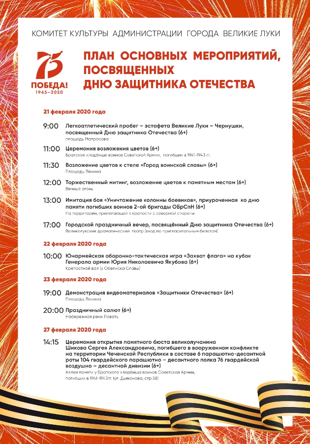 План основных мероприятий, посвященных Дню защитника Отечества