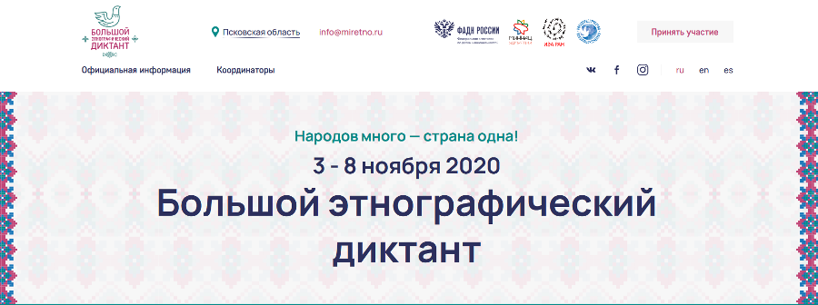 «Большой этнографический диктант» пройдет с 3 по 8 ноября 2020