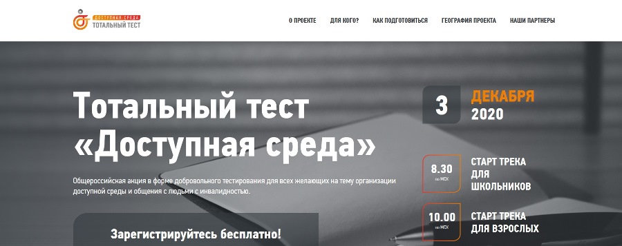 Общероссийская акция в форме добровольного тестирования для всех желающих на тему организации доступной среды и общения с людьми с инвалидностью.