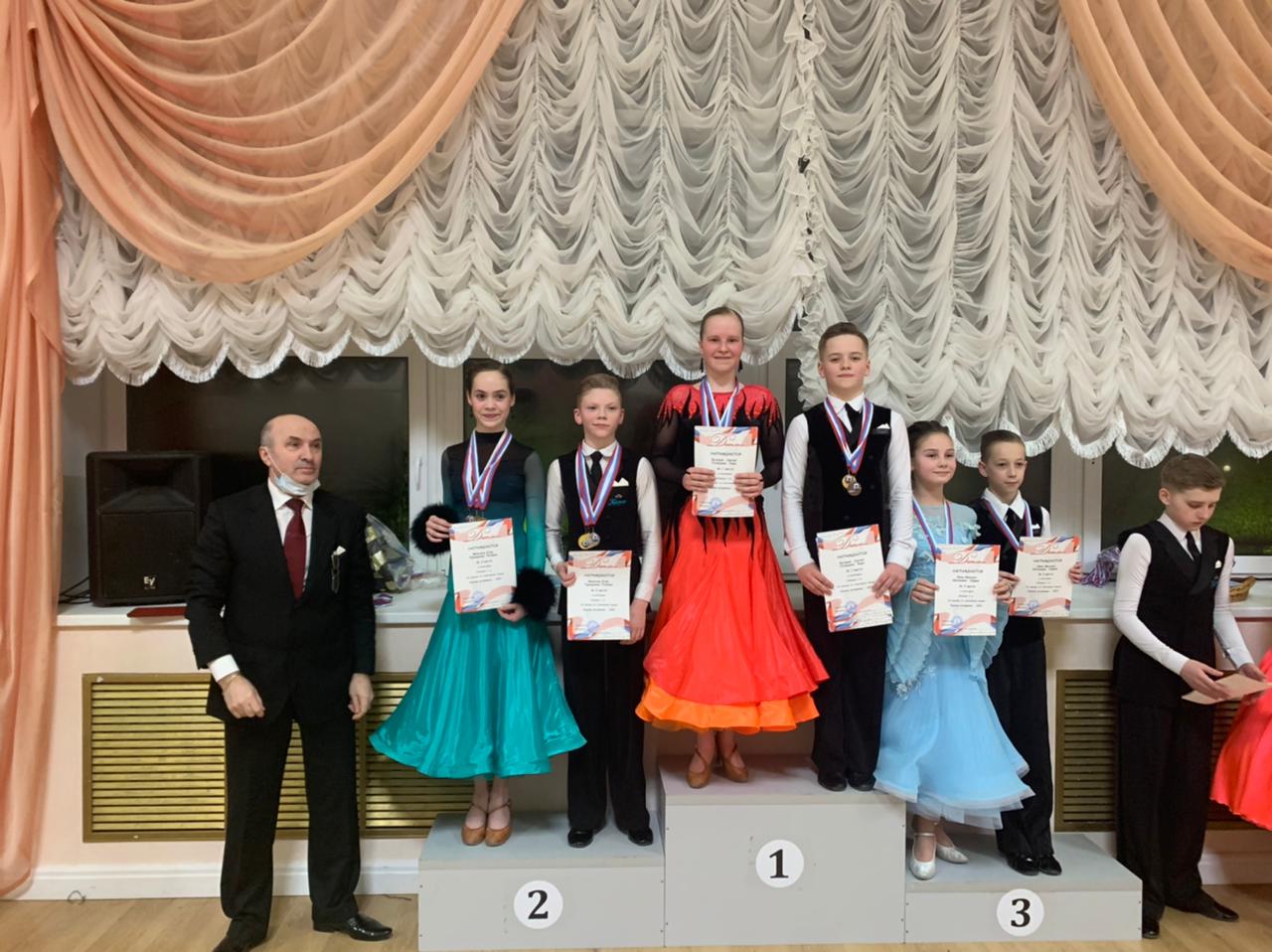 В первой категории Сергей Бухаров - Кира Голышева заняли первые места и золотые медали. Во второй категории Матвей Смирнов - Дарья Шаповалова трижды заняли первую ступень пьедестала и завоевали золотые медали.