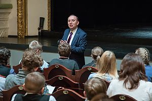08 апреля начала свою работу лаборатория-семинар по драматургии для подростков и молодежи #ПОКОЛЕНИЕ21#, проводимая ВДТ совместно с Гильдией драматургов России. В фойе театра состоялась пресс-конференция, затем в большом зале - лекция по правилам хорошего тона «Вокруг одни лопухи!» или, как занимаясь флиртом с авторским правом, достичь желаемого результата. Модератор –генеральный директор Гильдии драматургов России, драматург, режиссер, переводчик с испанского поэтического творчества, автор и ведущий программы «Авторская ремарка» телерадиокомпании «Русский мир», лауреат Всероссийской премии «Патриот России» (2020 г.) Бутунин Юрий Алексеевич.