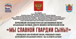 С 01 июля по 14 сентября 2021 года Проходит всероссийский ежегодный дистанционный online музыкальный фестиваль-конкурс военной и патриотической песни «Мы славной Гвардии сыны!» приурочен ко Дню российской гвардии – 2 сентября.