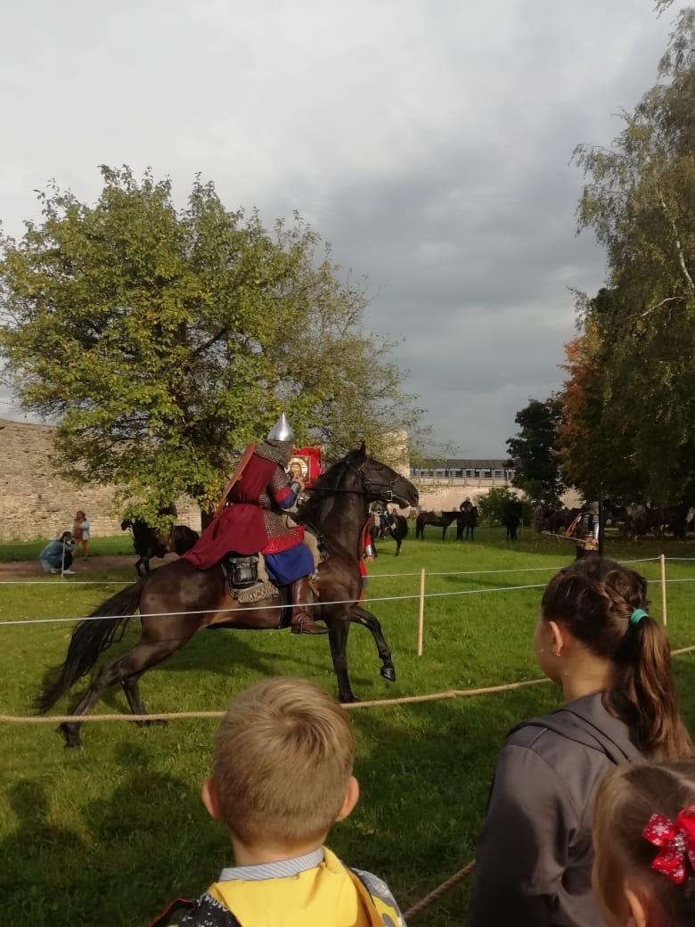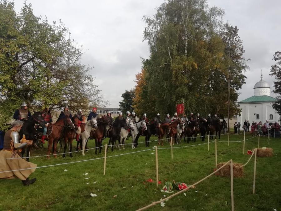 12 сентября в деревне Старый Изборск состоялось Торжественное закрытие исторической реконструкции конного похода Александра Невского «Александрова дорога». Участниками этого уникального события стали сотрудники Городского Дома Культуры имени Ленина – менеджер по связям с общественностью Анна Быстрова и руководитель Волонтерского центра «Волонтеры Культуры» Роман Зимин. Поход стартовал 21 августа 2021 года в национальном парке «Плещеево озеро». 20 конных дружинников в обмундировании воинов XIII века отправились в трудный путь длиной почти в тысячу километров. Начался этот путь от Поклонного креста на легендарной Александровой горе, где некогда находился родовой храм великого князя Александра Ярославича Невского. Завершился конный поход большим праздником на территории древнего города Изборск. Со сцены звучали русские песни, славящие Святого Благоверного князя Александра Невского. Творческие подарки дарили коллективы не только из Псковской области, но и из других регионов России: Ярославской, Московской, Тверской и Новгородской областей. Сами участники похода тоже не остались в стороне - они подготовили показательные выступления. Сидя на коне, воины показывали свое мастерство обращения с различными типами оружия того времени. Праздник получился на славу. Зрители были в восторге! Хочется верить, что на Псковской земле подобные мероприятия будут проходить чаще. Отметим, что все желающие могут посмотреть в записи прямую трансляцию мероприятия «Александрова дорога» на ютуб-канале Театрально-концертной дирекции.