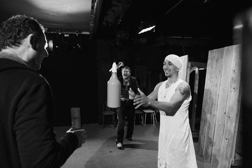 Сценографию к спектаклю придумал Яков Каждан, художник – Юлия Михеева, художник по свету – Сергей Гаевой. Хореография Анны Баркаловой, композитор – Александр Улаев. В ролях: Олег Ермолаев, Виктор Чариков и Максим Потапченко.