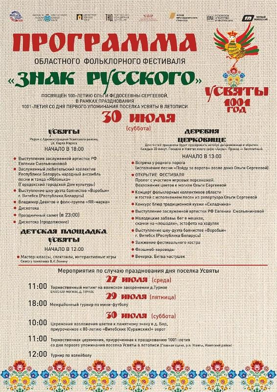 30 июля в Усвятском районе пройдет фольклорный фестиваль «Знак русского», посвящённый 100-летию Ольги Федосеевны Сергеевой.
