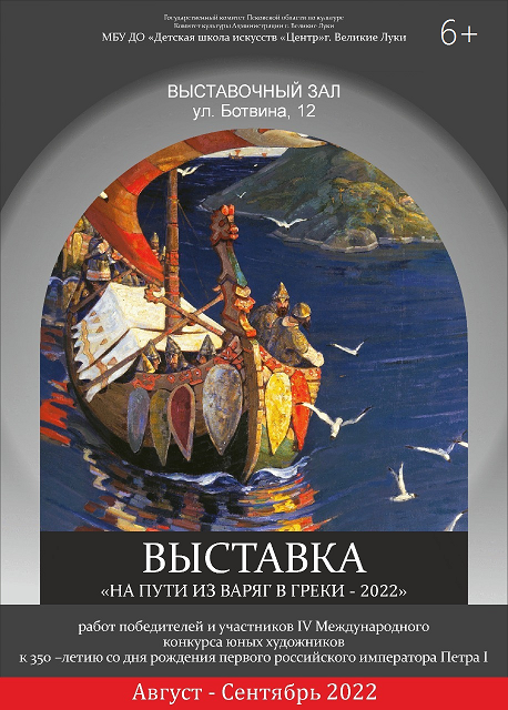 14 сентября в 16:00 в выставочном зале Детской школы искусств «Центр» г. Великие Луки состоится церемония награждения и презентация выставки работ победителей IV Международного конкурса юных художников «На пути из варяг в греки».