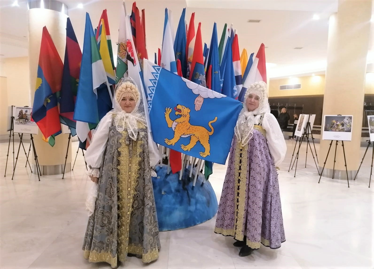 От региона участие в выставке-дефиле приняли руководитель Народного коллектива фольклорного ансамбля «Уграда» — Галина Березина и мастер декоративно-прикладного творчества, автор коллекции костюмов для фольклорного ансамбля «Уграда», изготовленных по образцу этнографического женского праздничного костюма Торопецкого уезда Псковской губернии — Татьяна Паршенкова.