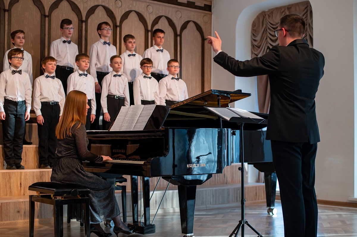 Концерт открывал Образцовый коллектив хор мальчиков ДШИ «Центр», в исполнении которого прозвучали несколько хоров из цикла «Шесть хоров для детских голосов», дирижировал Всеволод Ходош, партия фортепиано прозвучала в исполнении Ольги Петровой.