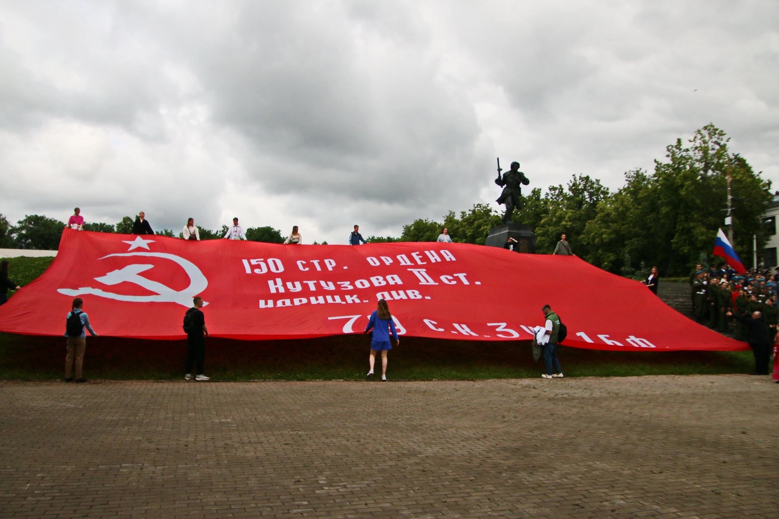Затем сводный хор великолучан исполнил эту знаменитую композицию. В годы войны «Катюша» поднимала боевой дух солдат, а сегодня её знает и любит вся страна – от мала до велика.